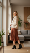 Sık pileli beli lastikli mat saten kiremit rengi etek
