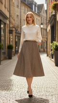 Kahverengi mini kareli etek
