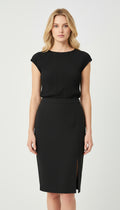 Yırtmaç detaylı astarlı siyah kumaş etek