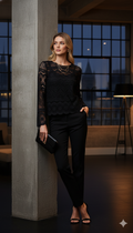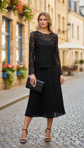 İç astarlı kol uçları geniş dantel arkası fermuarlı siyah bluz
