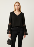 Kolları dantel detaylı siyah bluz