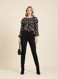 Tül desenli siyah bluz