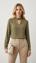 Önü pencere detaylı yeşil bluz
