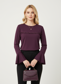 Önü ve kolları detaylı mor bluz