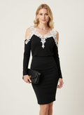 Yakası beyaz dantel detaylı siyah bluz