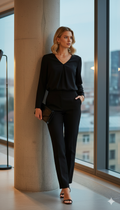 V yaka siyah bluz