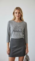 Yazı detaylı truvakar kol gri bluz
