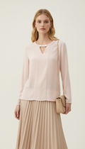 Yakası iki gold zımba detaylı uzun kol pudra bluz