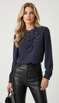 Çiçek dantel detaylı lacivert bluz