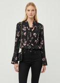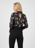 yakası arka bağlama detaylı çiçek desenli lacivert bluz