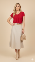 Yarım Kollu Kırmızı Tül Detaylı Bluz