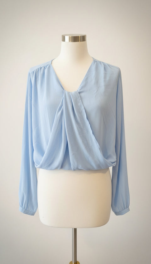 V yaka yarım kol sırt yaka ve kol üstü kısımları transparan tül detaylı bluz