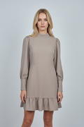 Ucu fırfır detaylı vizon elbise