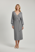 v yaka gri triko elbise