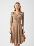 Bej yaka detaylı elbise