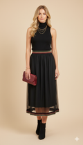 Bel ve etek ucu renk geçişli Beli lastikli astarlı siyah tül etek
