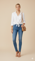 Yan cep detaylı önü bağlamalı beyaz gömlek