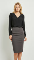 Siyah asimetrik kesim yanları transparan uzun kol gömlek