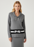 Önü düğmeli alt kısmı çizgili kazak