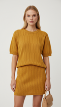Pul detaylı hardal sarısı yarım kol kazak