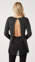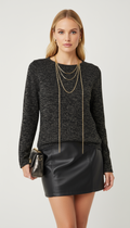 Gold sim detaylı arkası tül ve zincir detaylı kazak