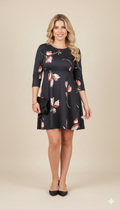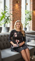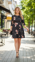 Siyah Lale Desenli Mini Boy Elbise