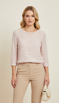 Üstü şifon göğüs altı ve kolları dantel yanları mini yırtmaçlı pudra bluz
