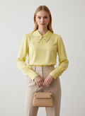 Su yeşili yakası taş detaylı bluz