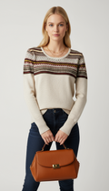Renk bloklu yırtmaçlı krem kazak