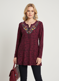 önü nakış işlemeli bağlama detaylı bordo bluz