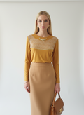 yakası inci aksesuar detaylı sarı bluz