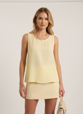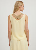 Arkası çapraz gold detaylı sarı sıfır kol bluz
