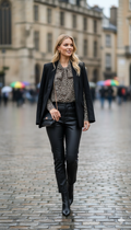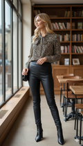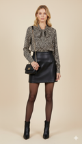 Yakası bağlama detaylı leopar bluz