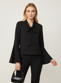 Yakası bağlama detaylı siyah bluz