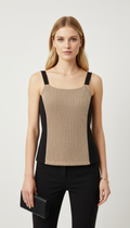 Askılı ön kısmı örme gold detaylı siyah bluz