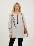 Yakası Bağlama detaylı kareli yandan çiçek desenli bluz