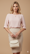 Uçları geniş truvakar kol pudra bluz