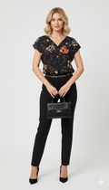 Büyük çiçekli alt kısmı lastikli yarım kol bluz