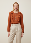 Kahverengi önü fırfır detaylı düğmeli bluz