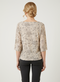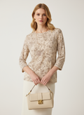 Kendinden desenli bej renginde bluz