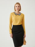Yakası pul ve kristal işlemeli sarı bluz