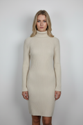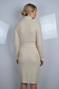 Arkası çapraz kemer detaylı krem renk triko elbise