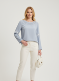 dantel ve inci detaylı mavi bluz