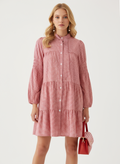 Potikare desenli katlı kırmızı elbise