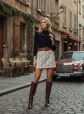 Dantel detaylı bel kısmı kahverengi saten mini etek