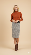 Beyaz siyah desenli midi boy kalem etek