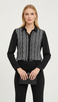 Önü beyaz çizgili siyah gömlek