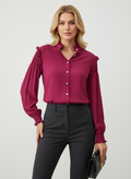 Pembe kolları lastik detaylı gömlek