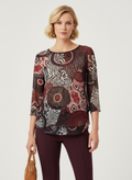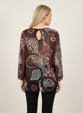 karışık desenli kırmızı leopar renk bloklu bluz