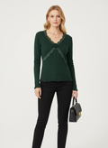 Gül detaylı yeşil kazak